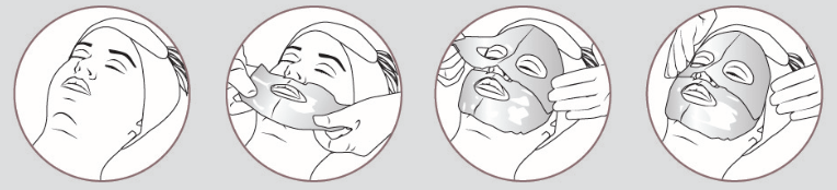 Open foil pack; Remove the two sections of the face mask; Unfold and place on cleansed face; Remove after 20 minutes; Do not rinse or cleanse after use; Allow the remaining ingredients to be absorbed by the face; Massage in the remaining essence in the pack.